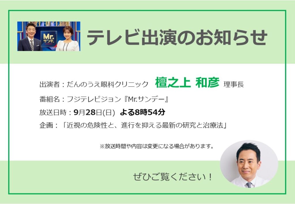 フジテレビジョン『Mr.サンデー』に檀之上理事長が出演します